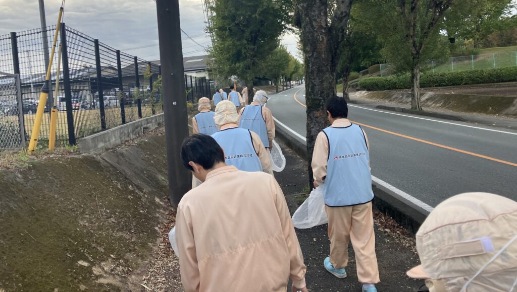 活動内容会社行事として毎月1回「ふれあい美化運動」として朝のラジオ体操後、会社周辺道路の約1km圏内のゴミ拾いを実施しています。